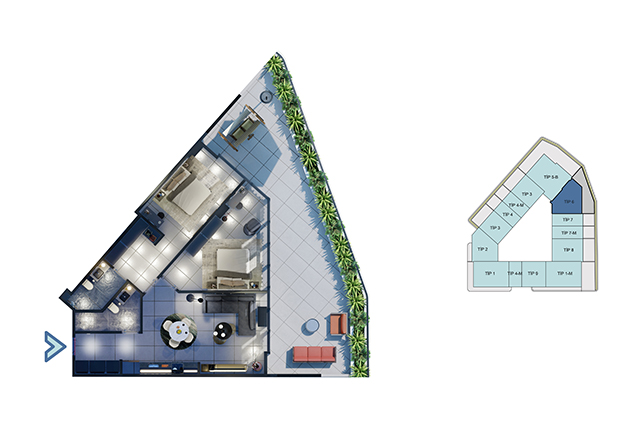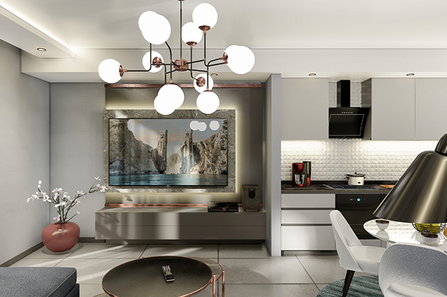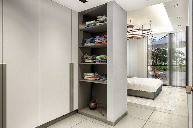 Spacious bed area with mini corridors and extra accents to drive comfort and luxury
